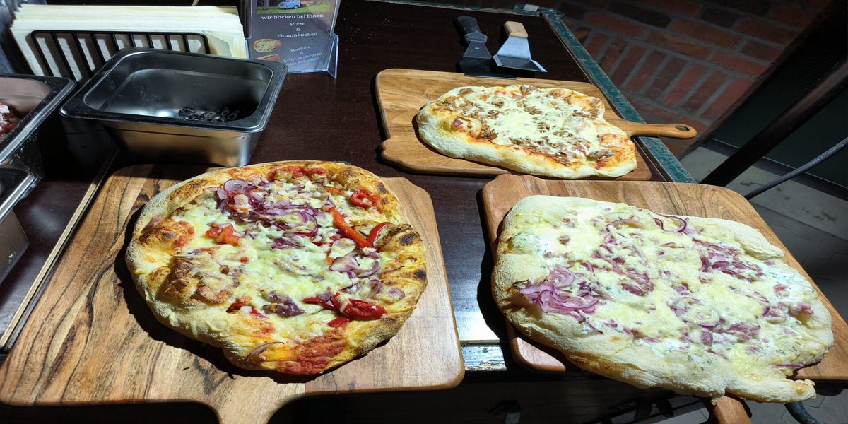 Frisch gebackene Pizza aus dem mobilen Gaspizzaofen